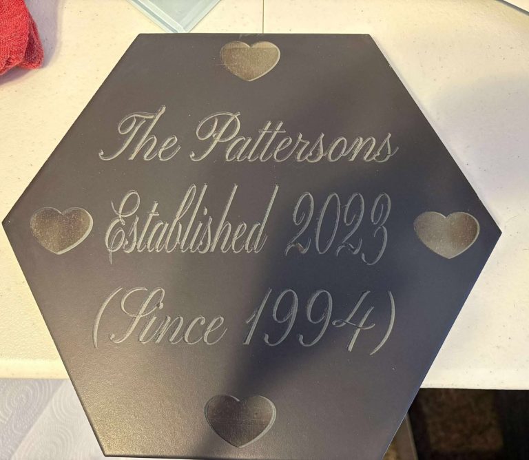 * The Pattersons: A personalized tile commemorating a couple's anniversary, including their names and a special date.