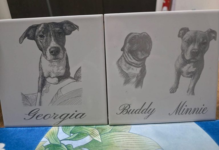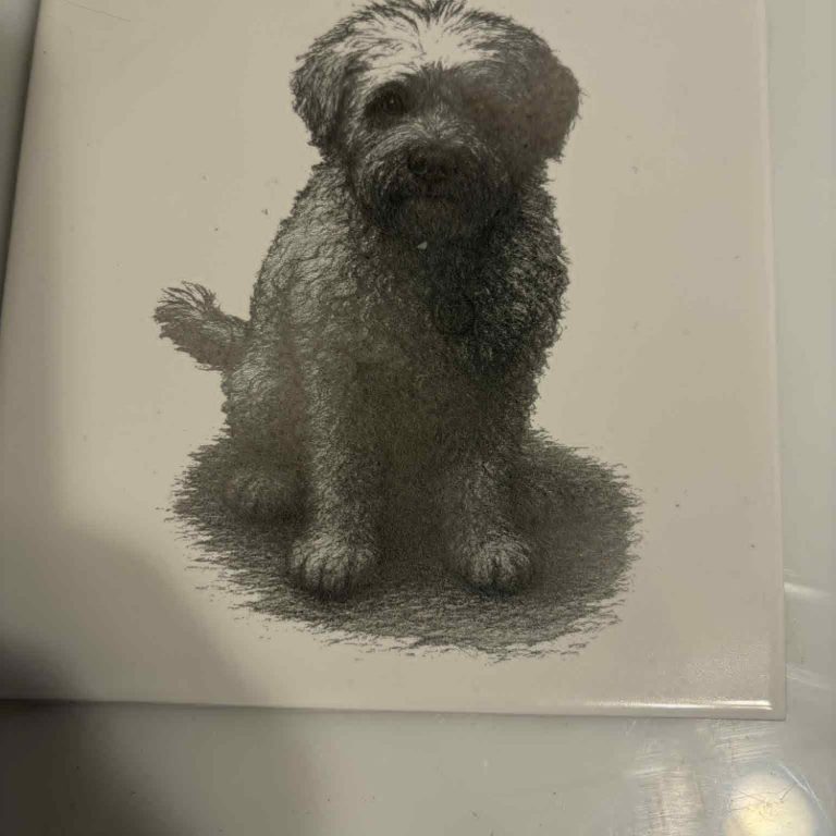 * Maggie: A heartwarming memorial tile featuring a beloved dog, capturing her playful spirit.